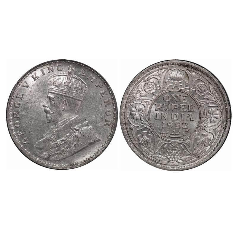 George V, Silver, Rupee, 1922, Bombay Mint, Dot. F. Prid. 228. GK 1044. Brilliant Uncirculated with original mint luster. Rare.