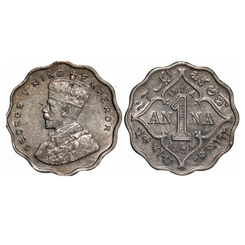 George V, Copper-Nickel, 1 Anna, 1934, Calcutta Mint, No dot. F. Prid 938. GK 1165. Brilliant Uncirculated. Scarce.