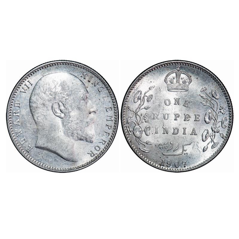 Edward VII, Silver, Rupee, 1907, Calcutta Mint, No mint mark. F. Prid 193. GK 942. Almost Uncirculated. Scarce.