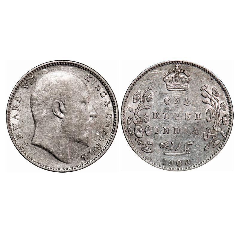 Edward VII, Silver, Rupee, 1909, Calcutta Mint, No mint mark. F. Prid. 195. GK 950. Almost Uncircul...