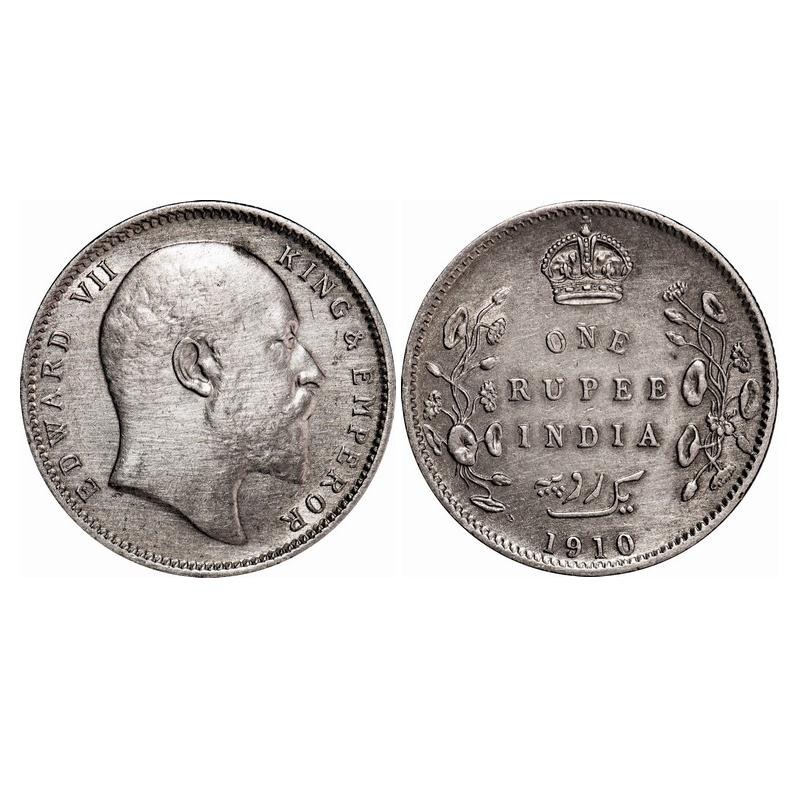 Edward VII, Silver, Rupee, 1910, Calcutta Mint, No mint mark, More spacing between the year numerals. F. Prid 196. GK 955. Extremely Fine+. Very Scarce.