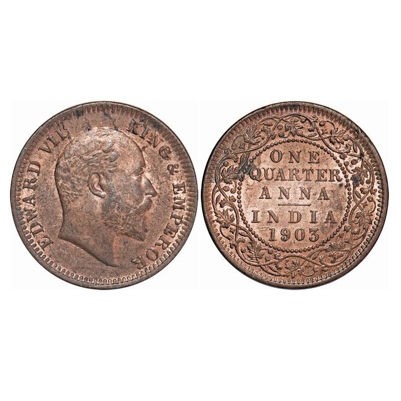 Edward VII, Copper, Quarter Anna, 1903, Calcutta Mint, No mint mark. F. Prid 646. GK 994. Uncirculated, Details. Scarce.