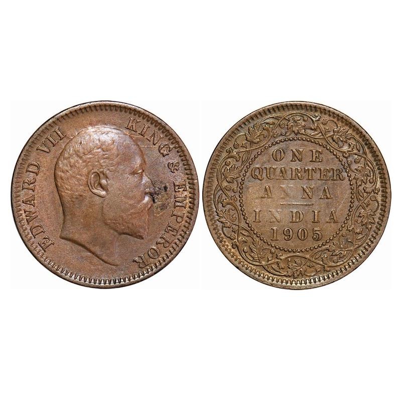 Edward VII, Bronze, Quarter Anna, 1907, Calcutta Mint, No mint mark, Ghost on Rev. F. Prid 652. GK ...