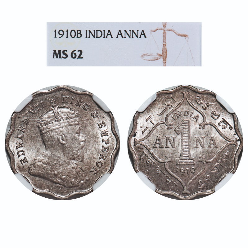 Edward VII, Copper-Nickel, 1 Anna, 1910, Bombay Mint, 'B' incused. F. Prid 929. GK 993. NGC Slabbed MS 63. Rare.