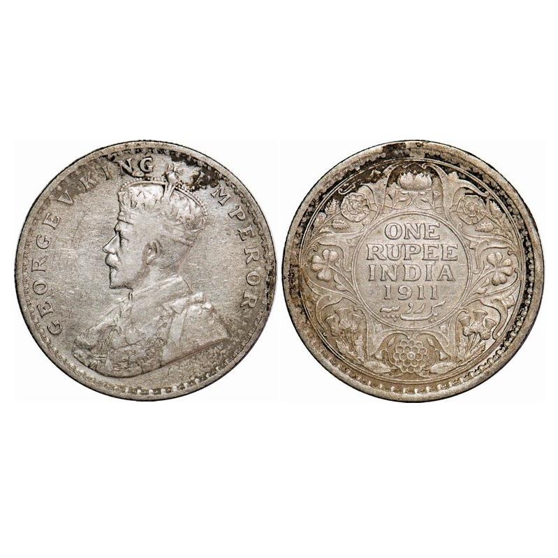 George V, Silver, Rupee, 1911, Calcutta Mint, No dot, Pig-Type. F. Prid 207. GK 1021. About Very Fine. Scarce.