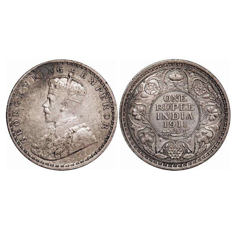 George V, Silver, Rupee, 1911, Calcutta Mint, No dot, Pig-Type. F. Prid 207. GK 1021. About Very Fi...