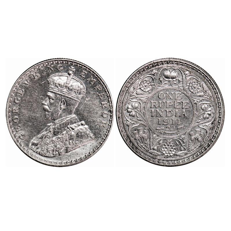 George V, Silver, Rupee, 1911, Calcutta Mint, No dot, Pig-Type. F. Prid 207. GK 1021. About Very Fi...
