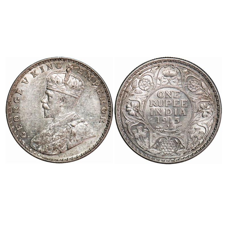 George V, Silver, Rupee, 1915, Bombay Mint, Dot. F. Prid. 221. GK 1032. About Uncirculated. Very Scarce.
