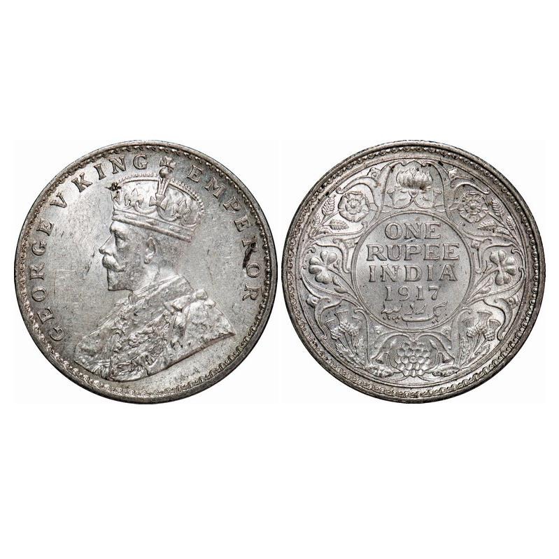 George V, Silver, Rupee, 1917, Bombay Mint, Dot. F. Prid 223. GK 1036. Uncirculated. Scarce....