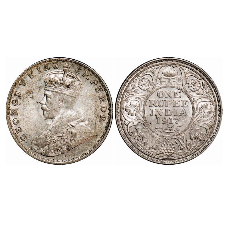 George V, Silver, Rupee, 1917, Bombay Mint, Dot. F. Prid 223. GK 1036. Uncirculated. Scarce.
