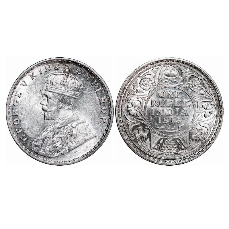 George V, Silver, Rupee, 1918, Bombay Mint, Dot. F. Prid 224. GK 1038. Uncirculated. Scarce.