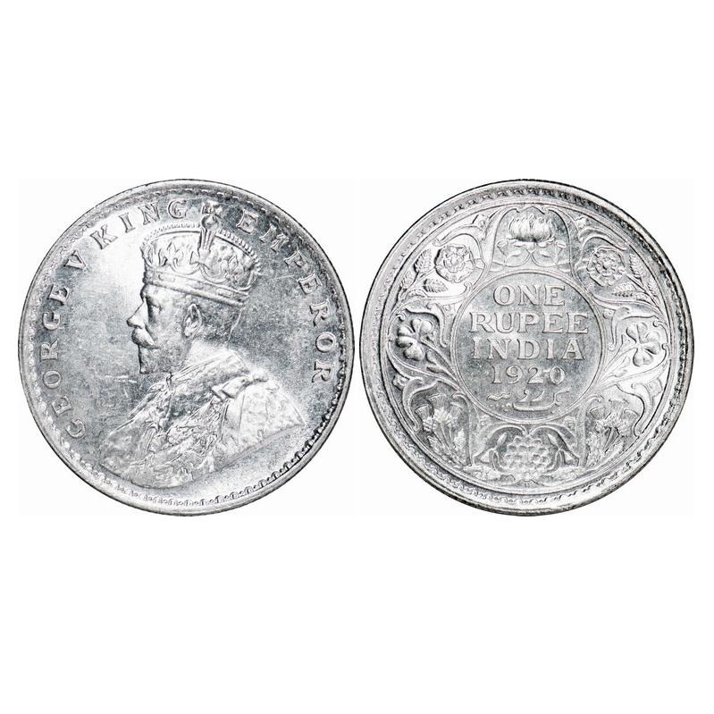 George V, Silver, Rupee, 1920, Bombay Mint, Dot, Ghost on Rev. F. Prid 226. GK 1042. Brilliant Uncirculated. Very Scarce.