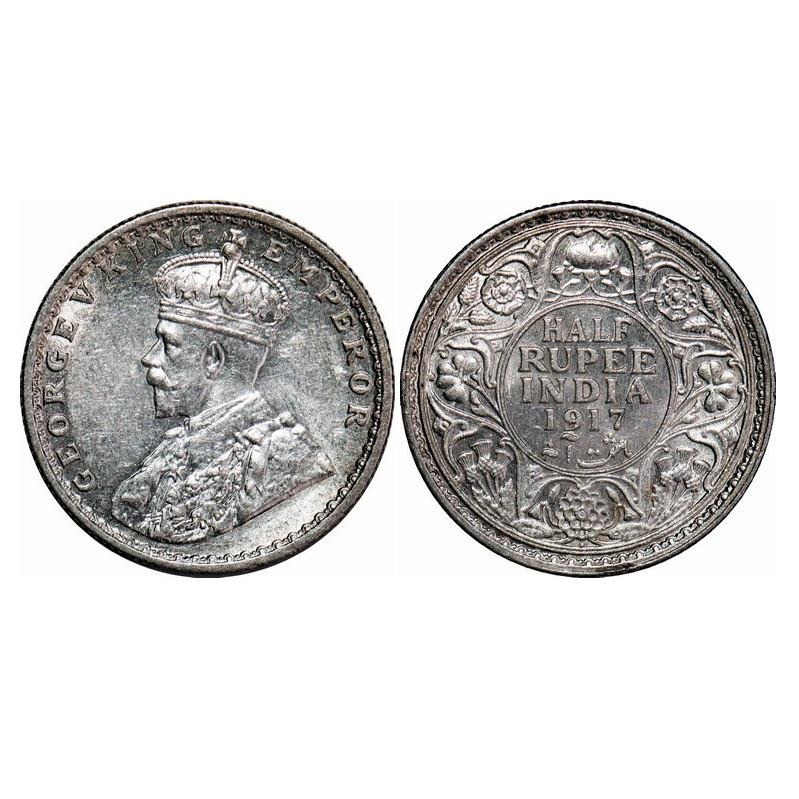 George V, Silver, Half Rupee, 1917, Bombay Mint, Dot. F. Prid 341. GK 1055. Uncirculated. Very Scarce.