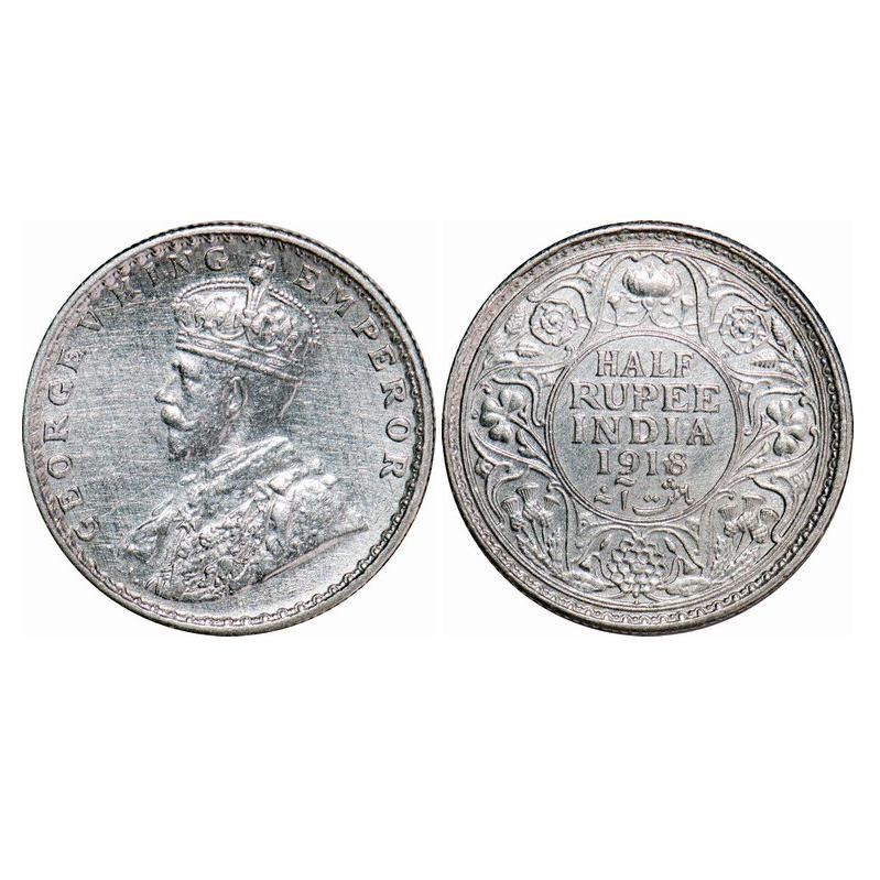 George V, Silver, Half Rupee, 1918, Bombay Mint, Dot. F. Prid 342. GK 1056. NGC Slabbed VF Details,...