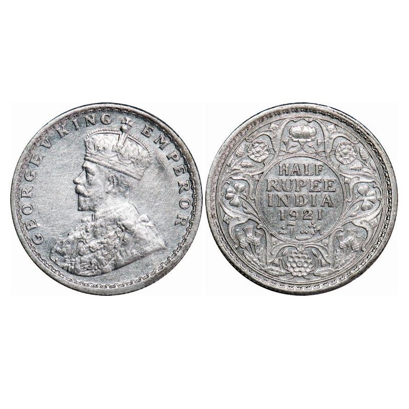George V, Silver, Half Rupee, 1921, Calcutta Mint, No dot, Elephant. F. Prid 324. GK 1058. About Uncirculated. Very Scarce.