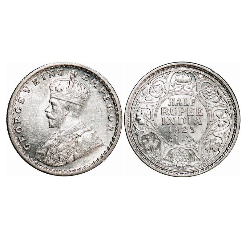 George V, Silver, Half Rupee, 1923, Calcutta Mint, No dot. F. Prid 326. GK 1061. Brilliant Uncirculated. Rare.