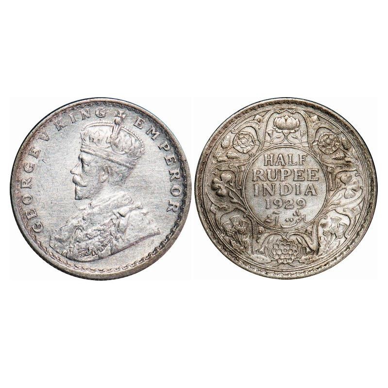 George V, Silver, Half Rupee, 1929, Calcutta Mint, No dot, Elephant. F. Prid 331. GK 1071. Extremely Fine+. Scarce.
