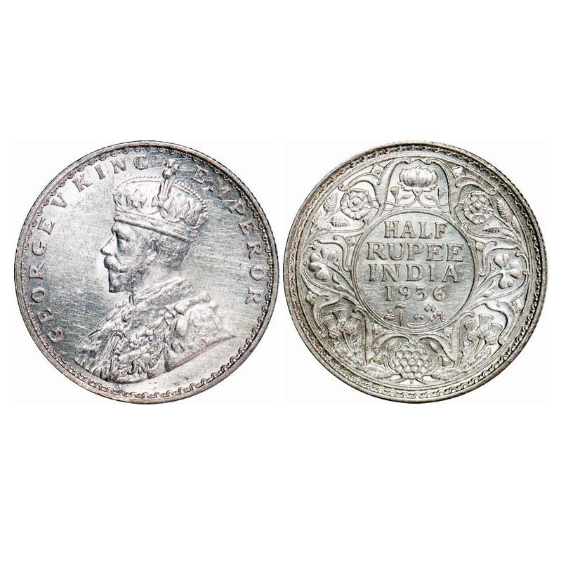 George V, Silver, Half Rupee, 1936, Bombay Mint, Dot. F. Prid 350. GK 1076. Uncircuated. Scarce....