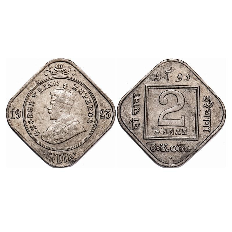 George V, Copper-Nickel, 2 Annnas, 1923, Bombay Mint, Dot. F. Prid 896. GK 1123. About Uncirculated. Very Scarce.
