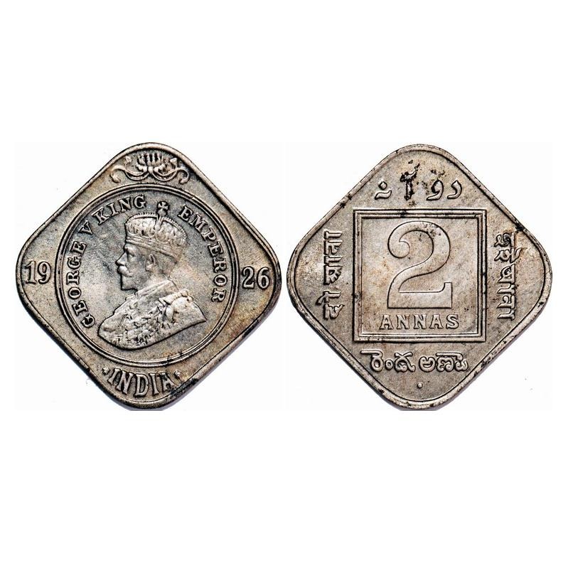 George V, Copper-Nickel, 2 Annnas, 1926, Bombay Mint, Dot. F. Prid 899. GK 1129. Uncirculated. Rare.