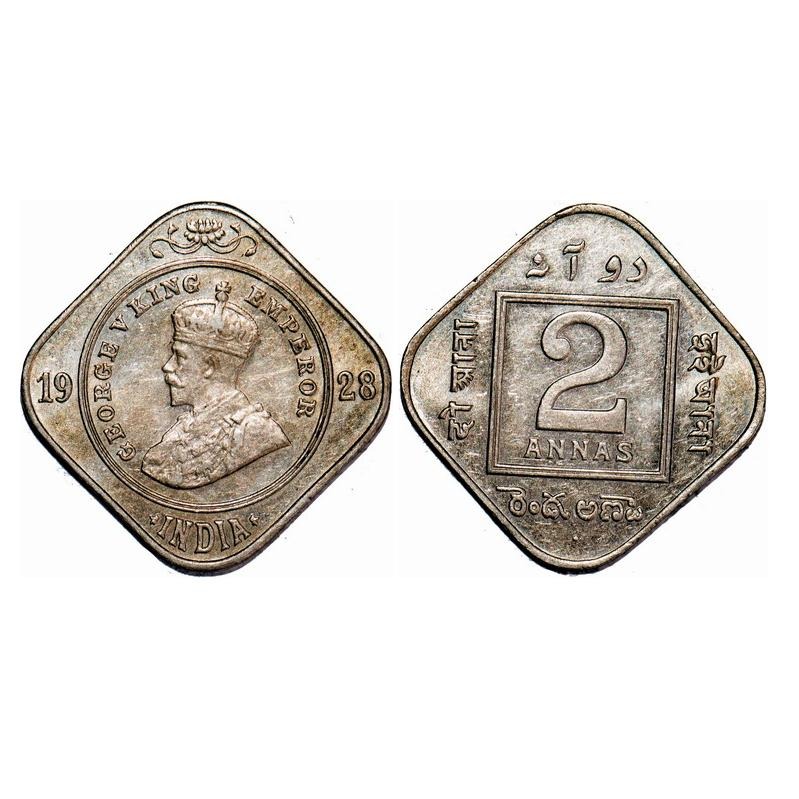 George V, Copper-Nickel, 2 Annas, 1928, Bombay Mint, Dot. F. Prid 901. GK 1133. Uncirculated with original mint luster. Rare.