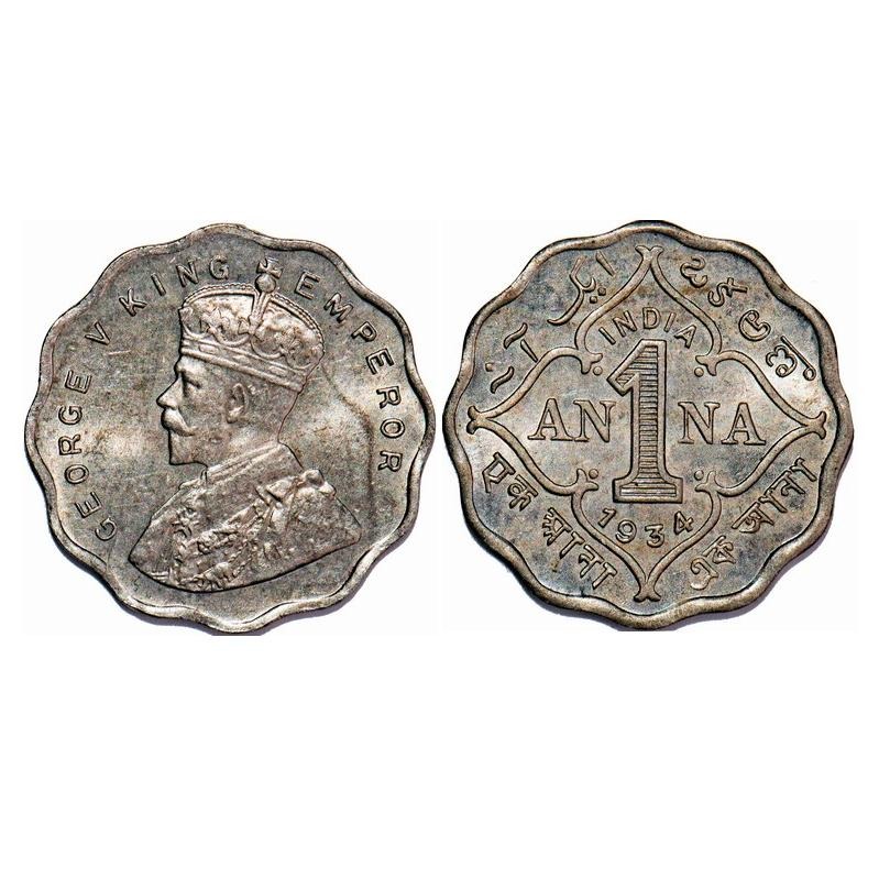 George V, Copper-Nickel, 1 Anna, 1934, Calcutta Mint, No dot. F. Prid 938. GK 1165. Uncirculated. Very Scarce.