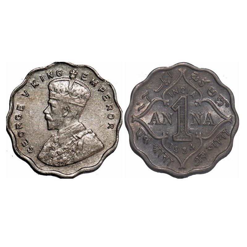 George V, Copper-Nickel, 1 Anna, 1934, Calcutta Mint, No dot. F. Prid 938. GK 1165. About Uncirculated. Very Scarce.