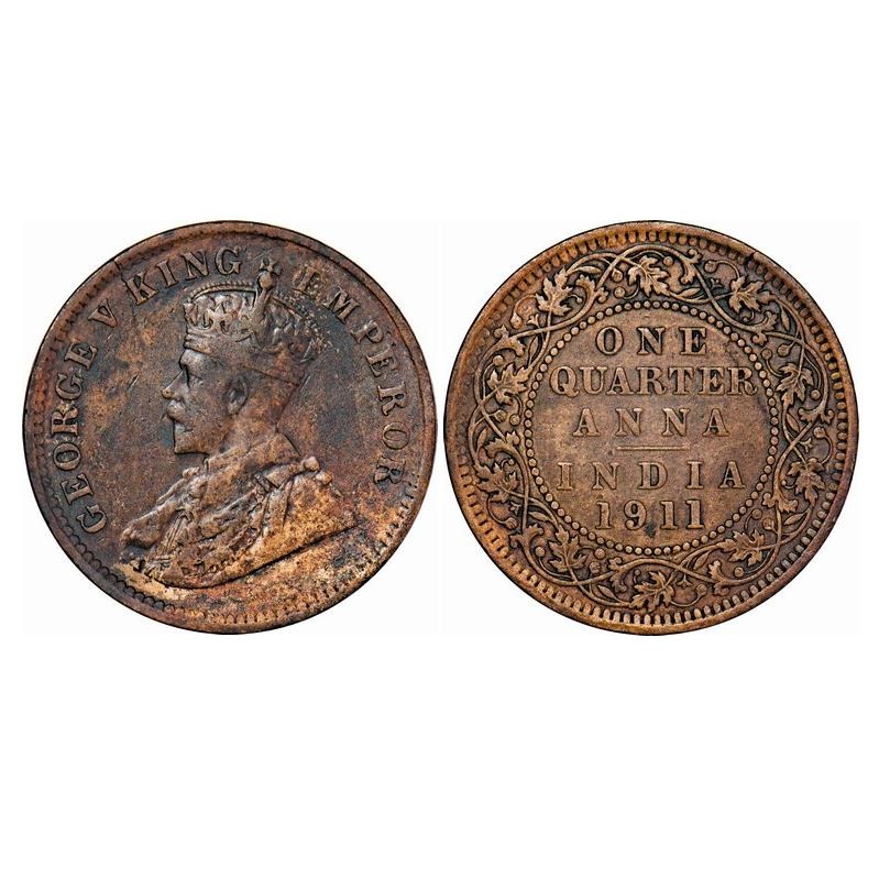 George V, Bronze, Quarter Anna, 1911, Calcutta Mint, No dot, Pig-Type. F. Prid 656. GK 1171. About ...