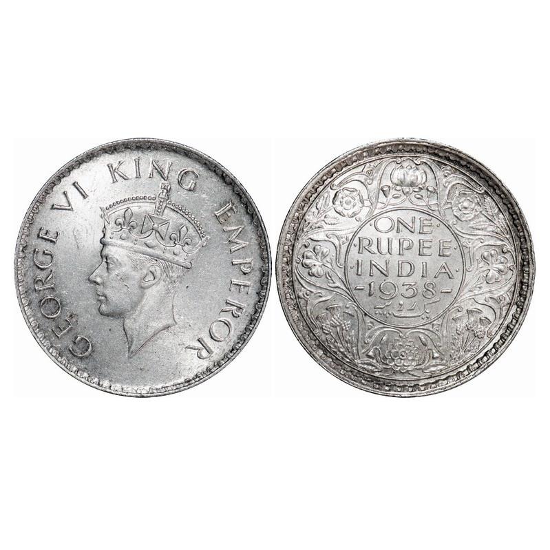 George VI, Silver, Rupee, 1938, Bombay Mint, A/I, No dot, Milled edge. F. Prid 340. GK 1054. Uncirculated. Very Scarce.