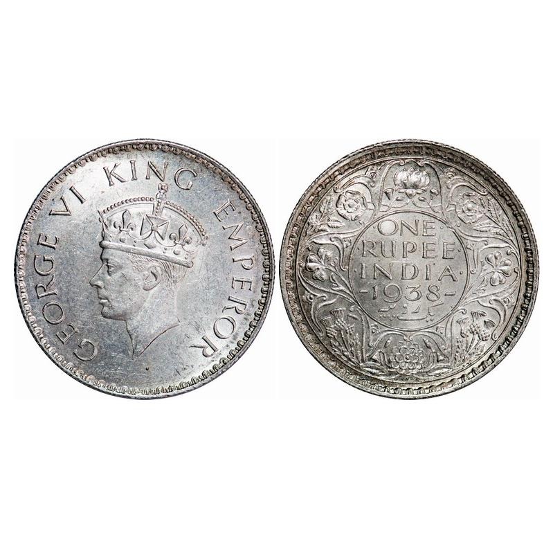 George VI, Silver, Rupee, 1938, Bombay Mint, A/I, Dot, Milled edge. F. Prid 234. GK 1255. Uncirculated. Very Scarce.