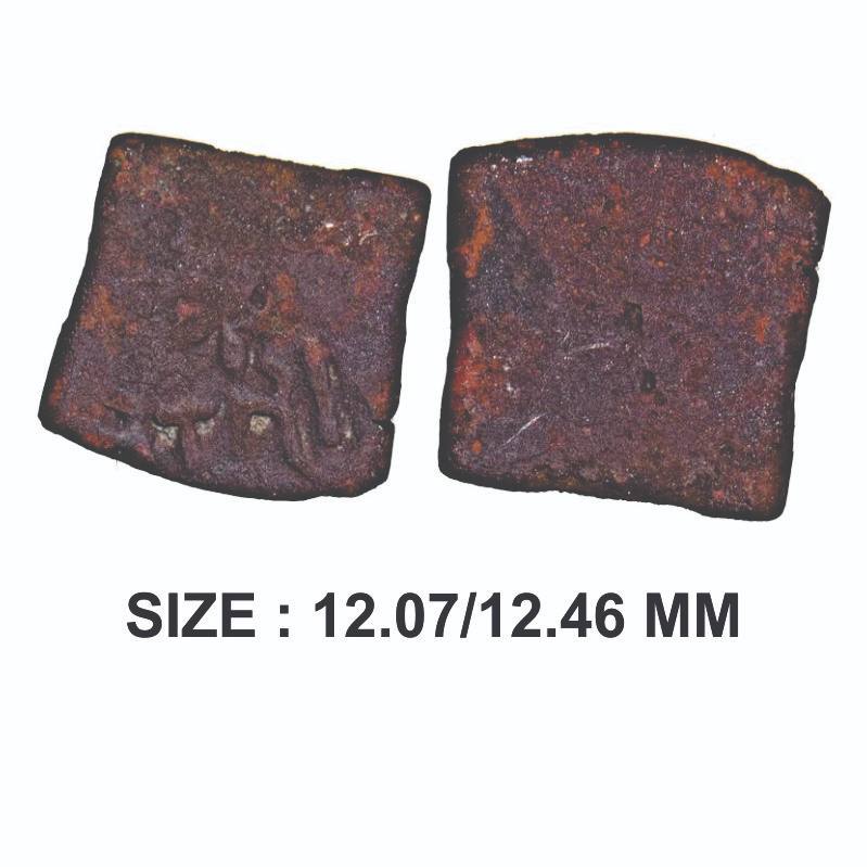 Post-Mauryan, Mathura region, Copper Unit, 1.14g, Obv: Like a tree or flower symbol in centre around Brahmi legend '[Vi]rasenasa'), Uniface. Unlisted. About Very Fine, Very Scarce.
