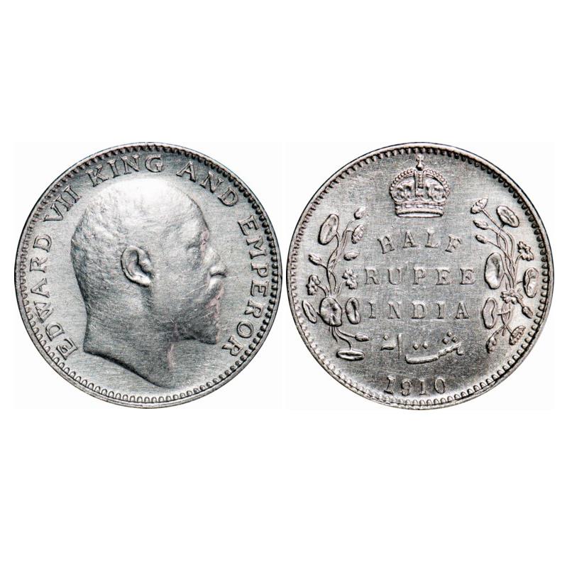 Edward VII, Silver, Half Rupee, 1910, Bombay Mint, 'B' incused and dot. F. Prid 314. GK 970. Extremely Fine+. Very Scarce.