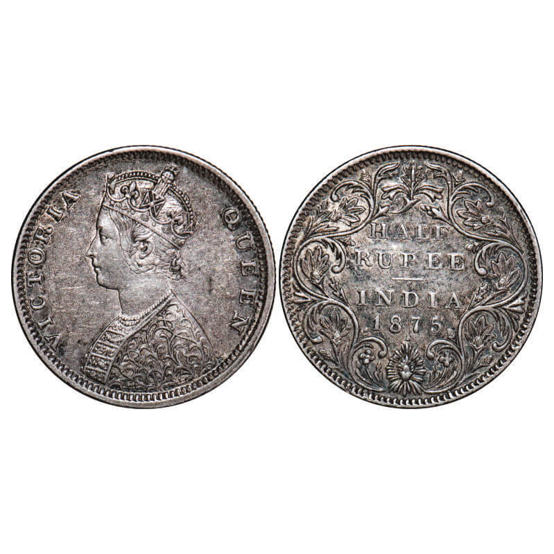 Victoria Queen, Silver, Half Rupee, 1875, Bombay Mint, B1/II, Dot. F. Prid Unlisted. GK 601. About Uncirculated. Scarce.