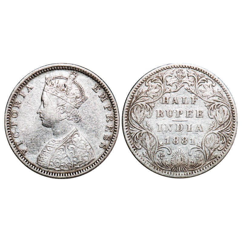 Victoria Empress, Silver, Half Rupee, 1881, Bombay Mint, B2/II, Dot. F. Prid 289. GK 615. Very Fine+. Very Scarce.