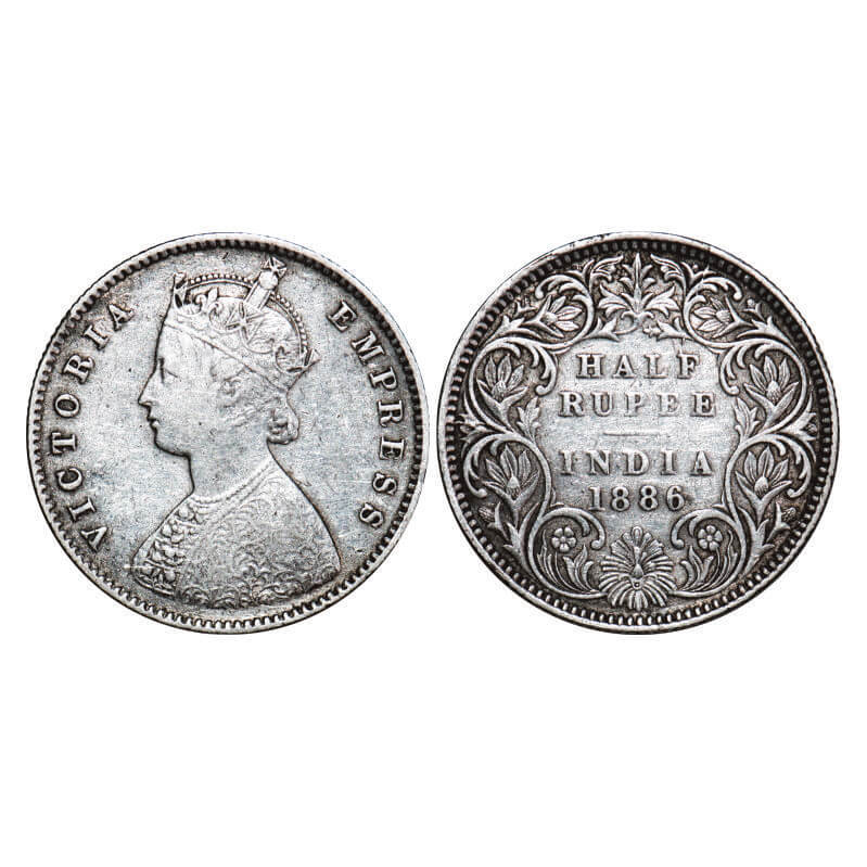 Victoria Empress, Silver, Half Rupee, 1886, Calcutta Mint, A/I, ‘C’ incused. F. Prid 270. GK 634. Very Fine+. Very Scarce.