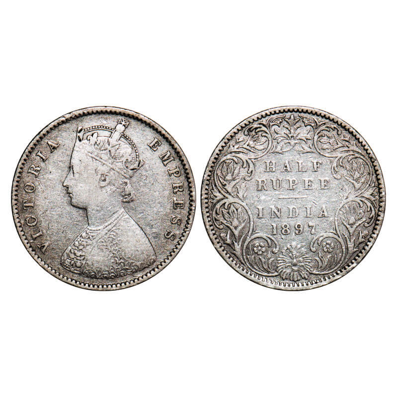 Victoria Empress, Silver, Half Rupee, 1897, Bombay Mint, A/I, ‘B’ incused. F. Prid 305. GK 655. Very Fine. Very Scarce.