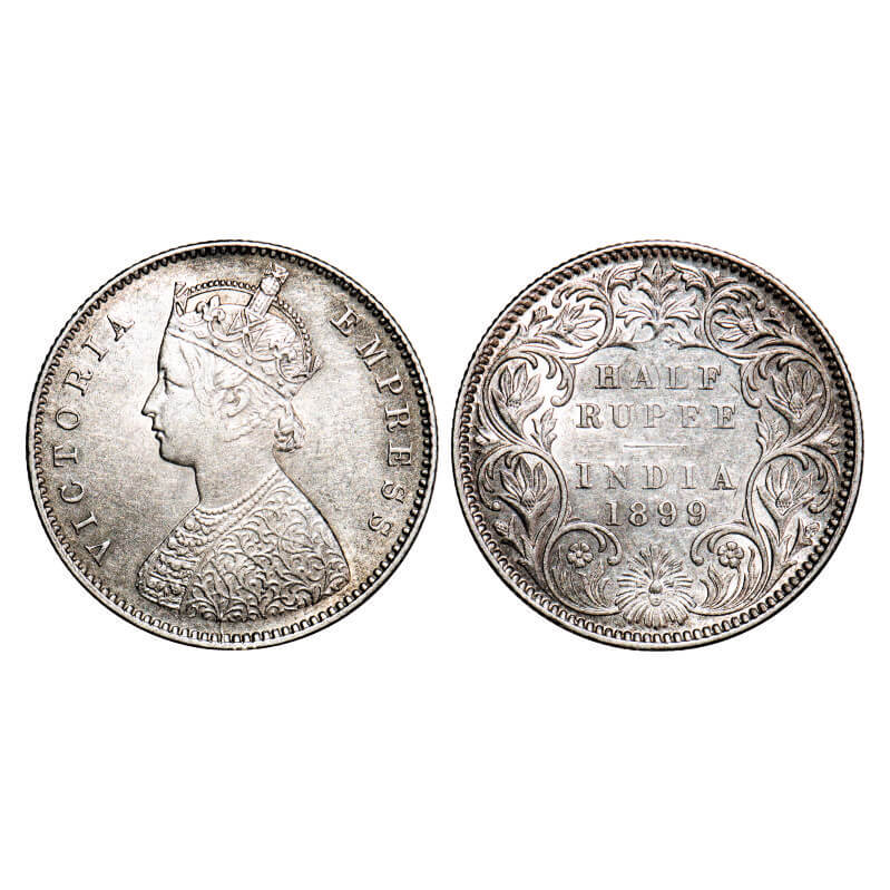 Victoria Empress, Silver, Half Rupee, 1899, Calcutta Mint, A/I, ‘C’ incused. F. Prid 282. GK 663. A...