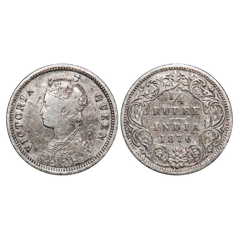 Victoria Queen, Silver, 1/4 Rupee, 1876, Bombay Mint, A/I, No Dot. F. Prid 407. GK 668. Very Fine. Scarce.
