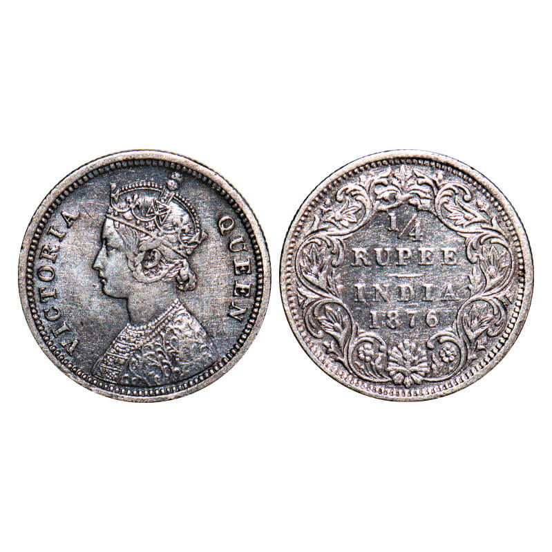 Victoria Queen, Silver, 1/4 Rupee, 1876, Calcutta Mint, A/I, No mint mark, No āCā. F. Prid 381. GK ...