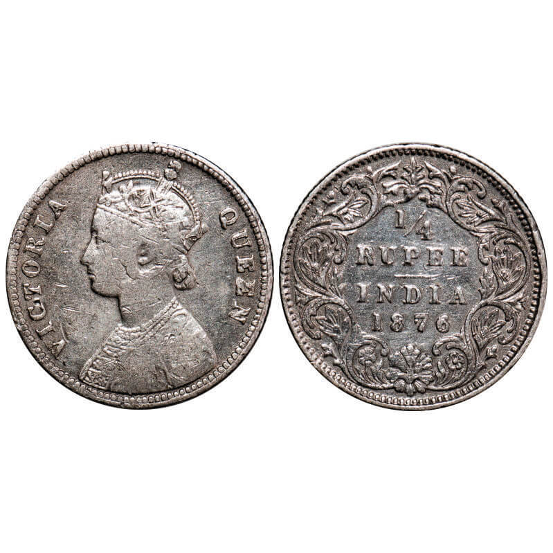 Victoria Queen, Silver, 1/4 Rupee, 1876, Calcutta Mint, A/I, No mint mark, No ‘C’. F. Prid 381. GK 669. Very Fine. Very Scarce.