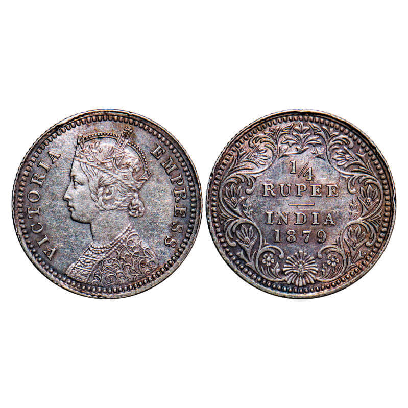 Victoria Empress, Silver, 1/4 Rupee, 1879, Calcutta Mint, C/II, ‘C’ incused. F. Prid 384. GK 674. Extremely Fine+. Rare.