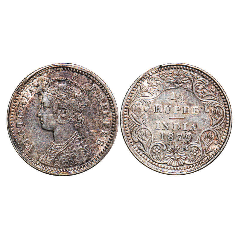 Victoria Empress, Silver, 1/4 Rupee, 1879, Calcutta Mint, C/II, ‘C’’ incused. F. Prid 384. GK 674. Extremely Fine+. Rare.