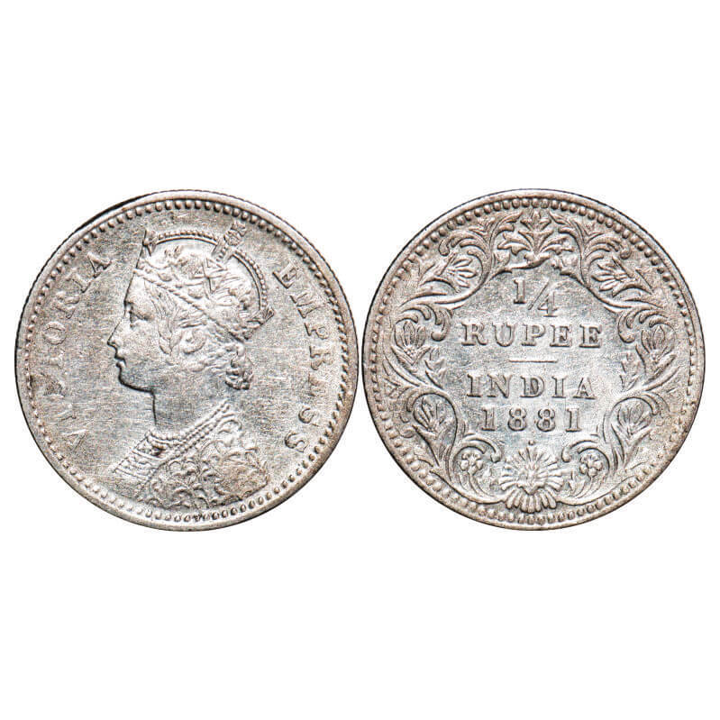 Victoria Empress, Silver, 1/4 Rupee, 1881, Bombay Mint, C/II, Dot, Ghost on Rev. F. Prid Unlisted. GK 679. Extremely Fine. Very Scarce.