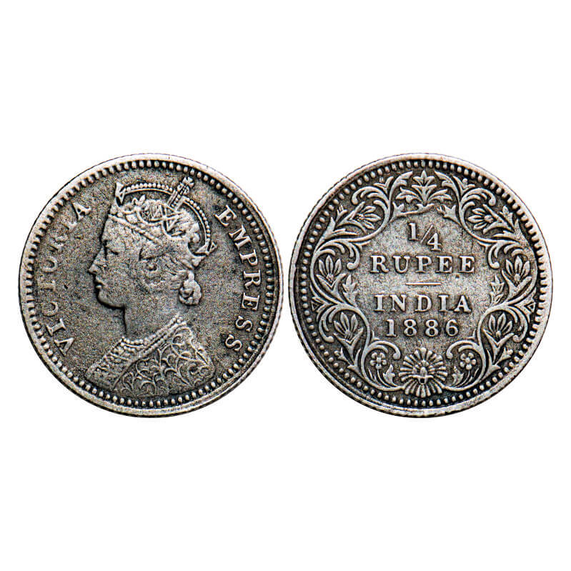 Victoria Empress, Silver, 1/4 Rupee, 1886, Calcutta Mint, C/II, ‘C’ incused. F. Prid 391. GK 707. Very Fine+. Very Scarce.