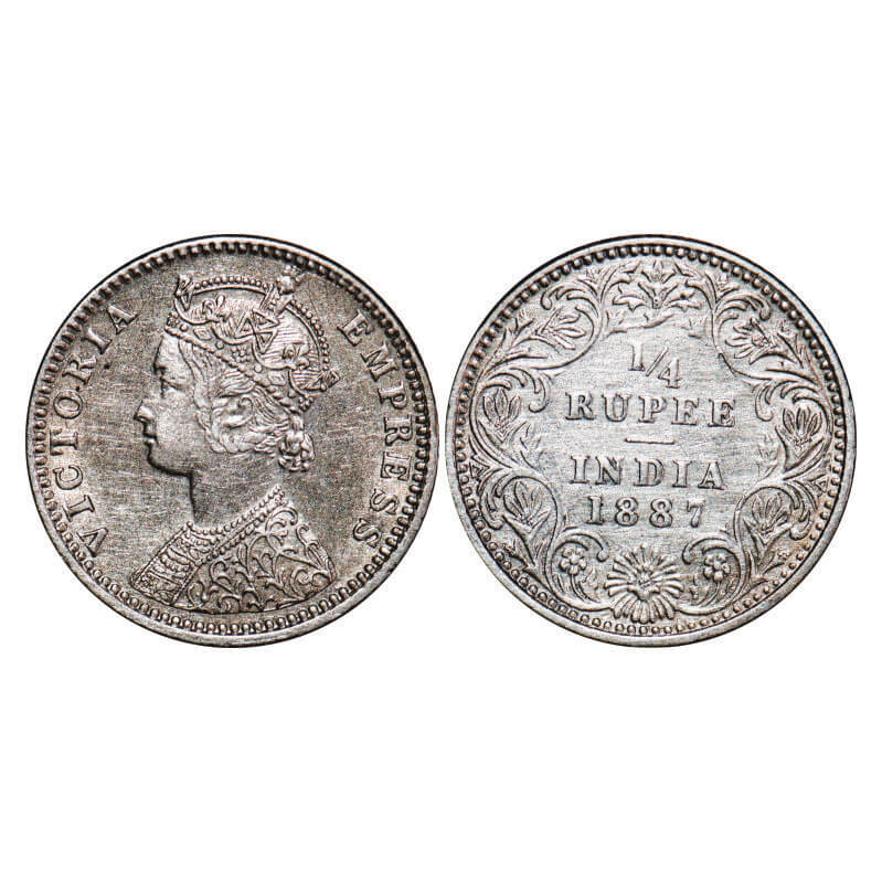 Victoria Empress, Silver, 1/4 Rupee, 1887, Bombay Mint, C(i)/II, ‘B’ raised. F. Prid 420. GK 708. Almost Uncirculated. Very Scarce.
