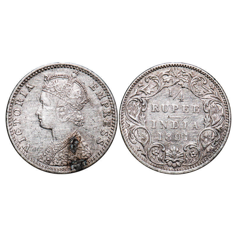 Victoria Empress, Silver, 1/4 Rupee, 1891, Bombay Mint, C(i)/I, ‘B’ incused. F. Prid 425. GK 720. Extremely Fine+. Very Scarce.