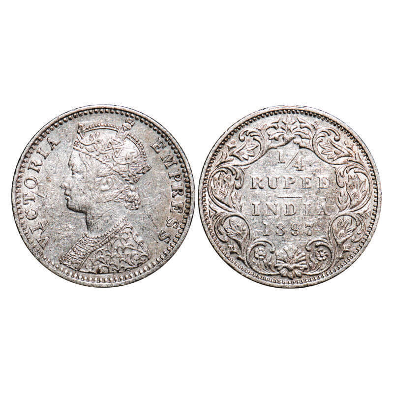 Victoria Empress, Silver, 1/4 Rupee, 1897, Bombay Mint, C(i)/I, ‘B’ incused. F. Prid 430. GK 731. About Uncirculated. Very Scarce.