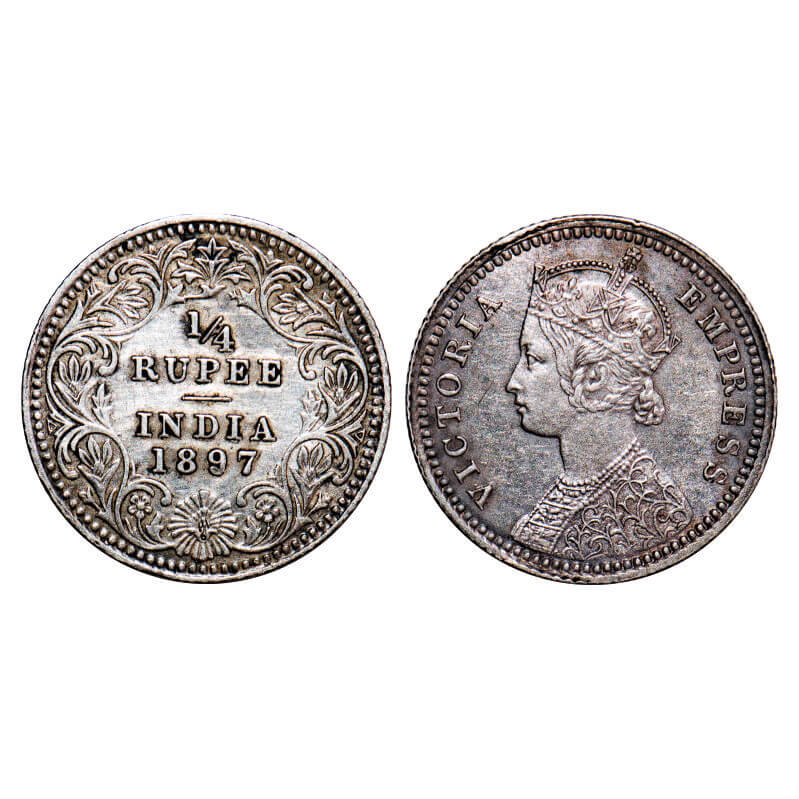 Victoria Empress, Silver, 1/4 Rupee, 1897, Calcutta Mint, C/II, ‘C’ incused. F. Prid 401. GK 732. Extremely Fine. Scarce.