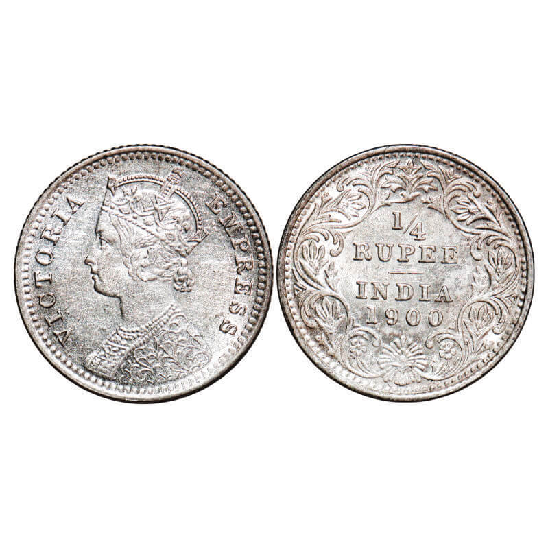 Victoria Empress, Silver, 1/4 Rupee, 1900, Calcutta Mint, C/II, ‘C’ incused, Die cracks on Obv. F. Prid 403. GK 736. Uncirculated. Very scarce.