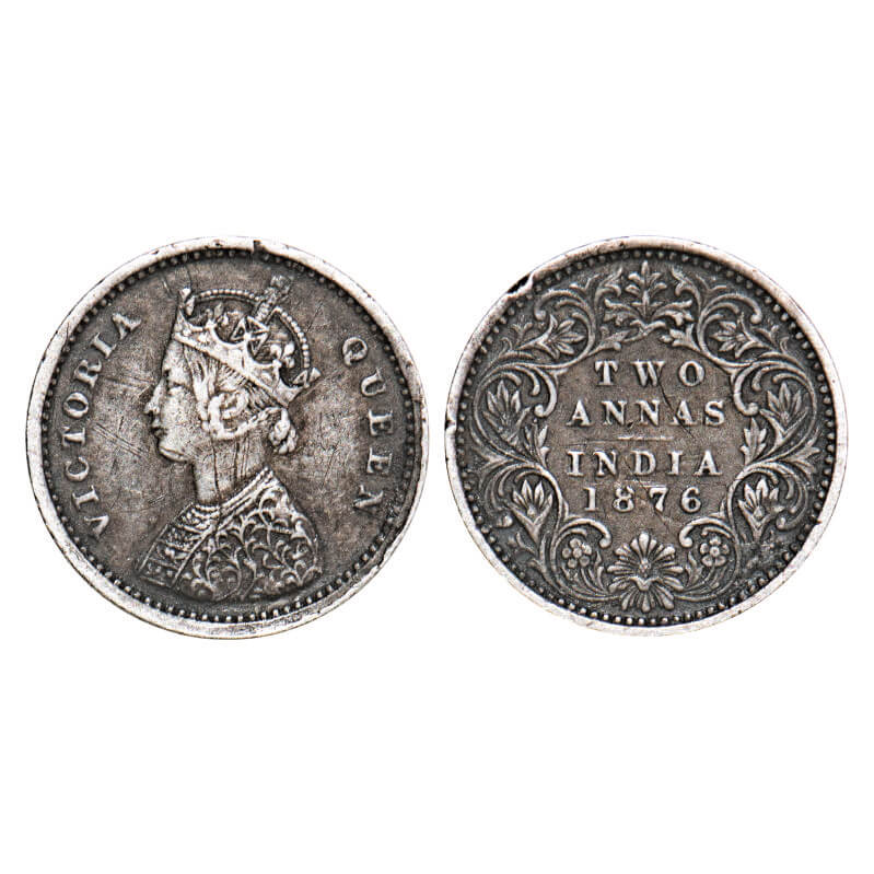| Victoria Queen, Silver, 2 Annas, 1876, Bombay Mint, A/I, Dot, Nick on Rev rim edge. F. Prid 519. GK 744. Extremely Fine, Details. Very Scarce. |